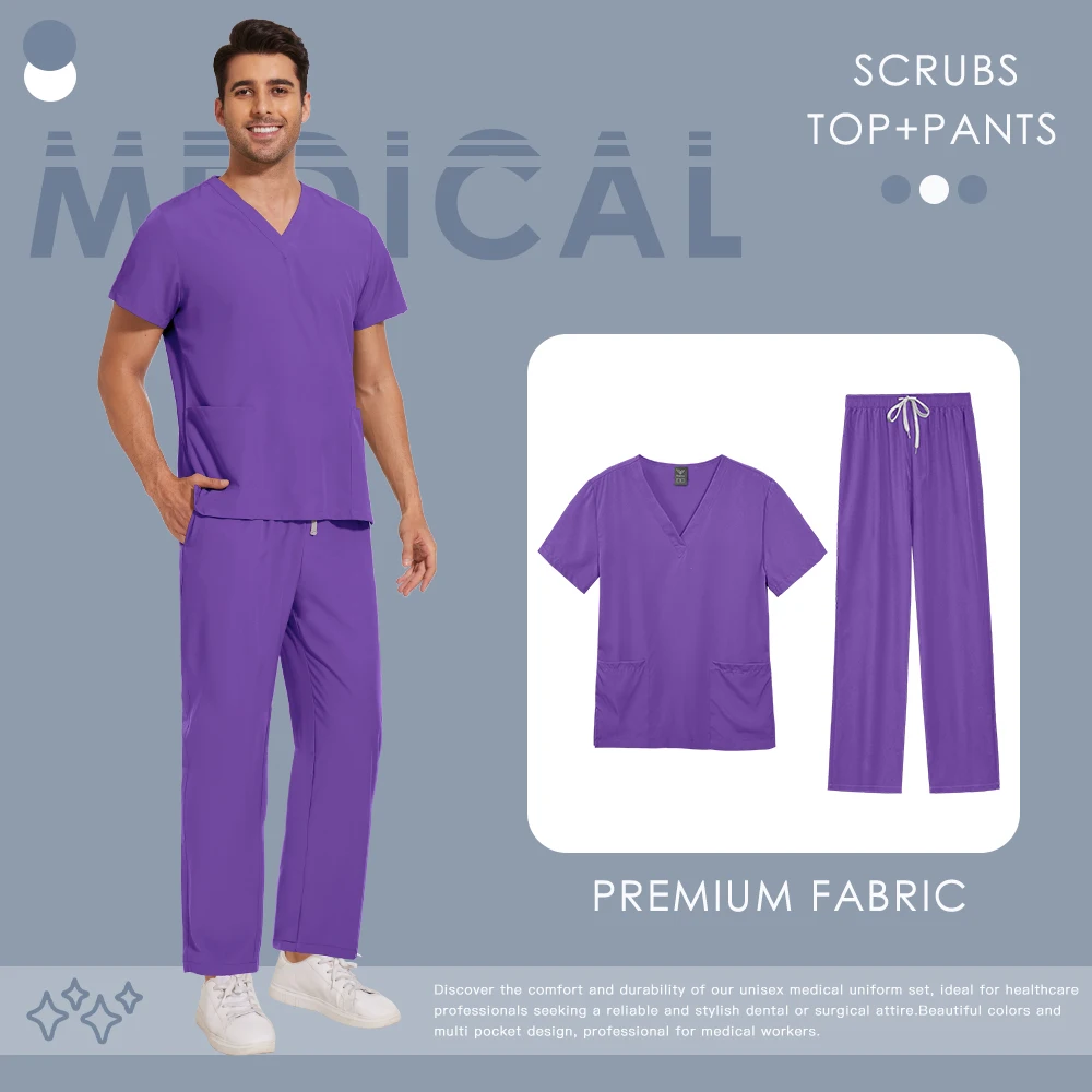 Unisex Medical Scrub Set – Breathable Stretch Uniform (94% Polyester, 6% Spandex)