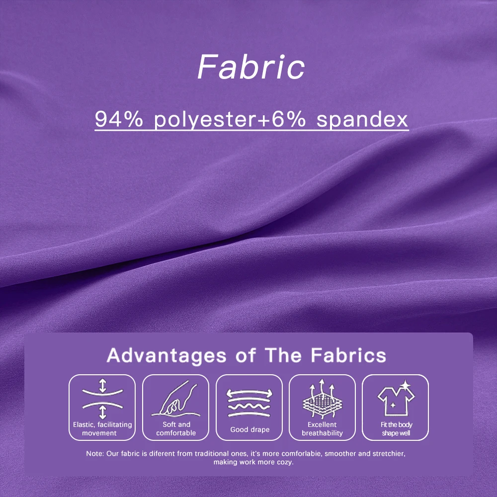 Crafted from a soft stretch blend of 94% polyester and 6% spandex, this scrub set provides breathable comfort while allowing freedom of movement. Whether you're working in a hospital, clinic, or dental office, this uniform helps you stay comfortable and confident all day.